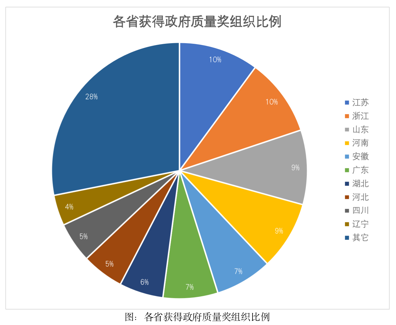 市级或以上政府质量奖获奖组织数量排在前十的省份分别是江苏、浙江、山东、河南、安徽、广东、湖北、河北、四川、辽宁。